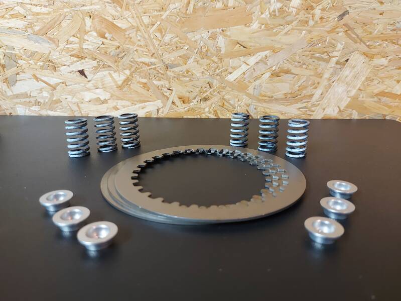 We got the white springs, 3x2,0 plates and some aluminium 5mm tophats. they save some weight over the OEM steel ones. And they reduce the rotating mass